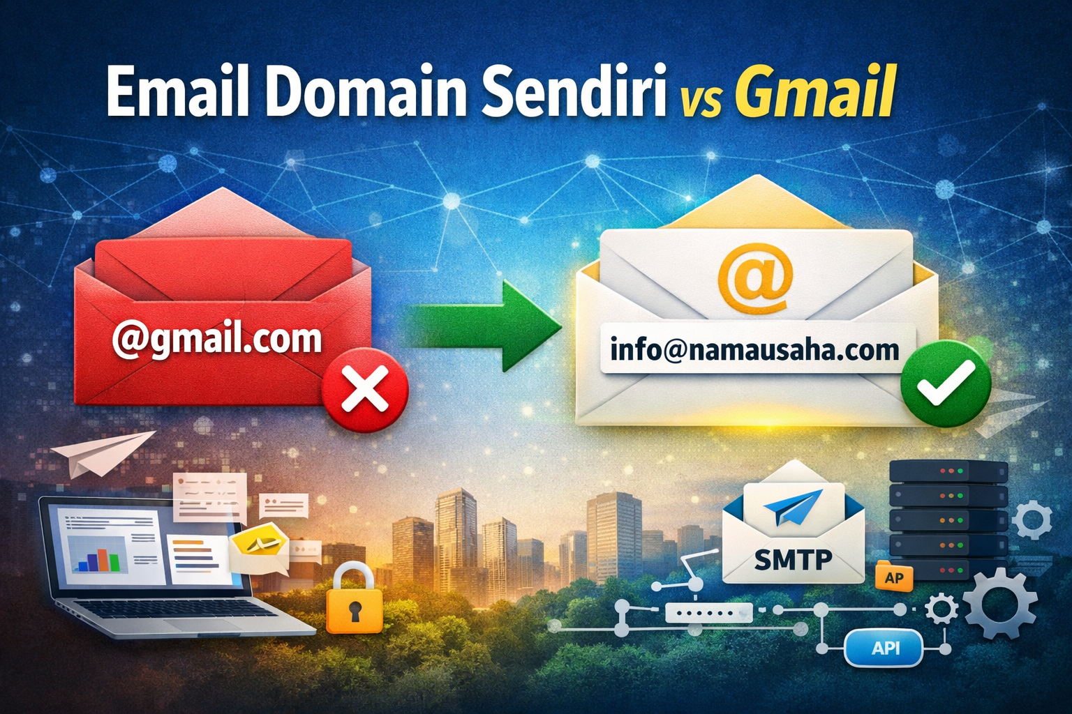 Email domain sendiri bukan sekadar soal alamat email. Ini adalah identitas digital, alat branding, dan fondasi komunikasi bisnis jangka panjang. Dibanding email gratis, domain sendiri memberi kontrol, kredibilitas, dan fleksibilitas yang jauh lebih besar untuk mendukung pertumbuhan bisnis.
