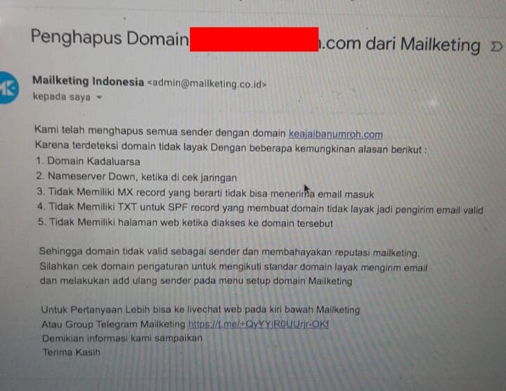 Baiklah, kami dari mailketing sebetulnya sudah jelaskan detail tentang kebutuhan pengiriman dari email domain layak