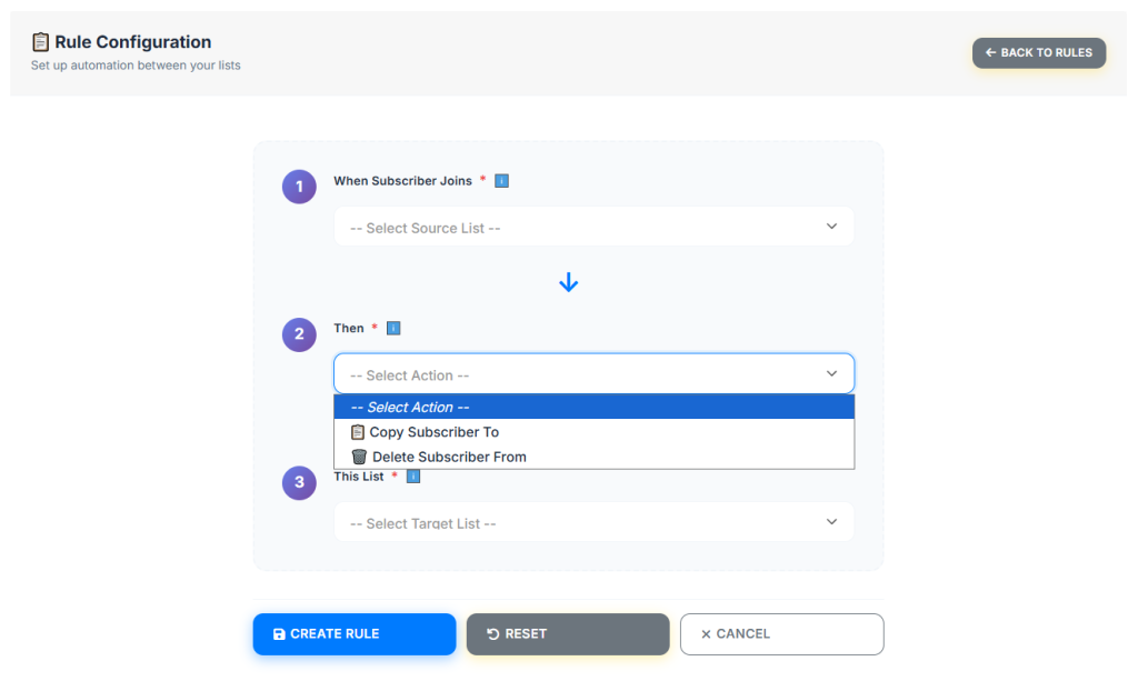 Menu: List & Subscribers → Rules