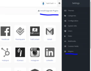 - Silahkan ke Menu plugins pada dashboard mautic dan klik Install/Upgrade