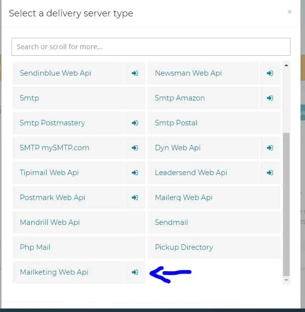 2. Akan tampil opsi Mailketing Web Api, silahkan dipilih