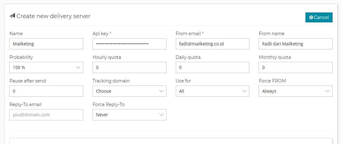 Demikianlah cara integrasi Mailwizz dengan Mailketing Api