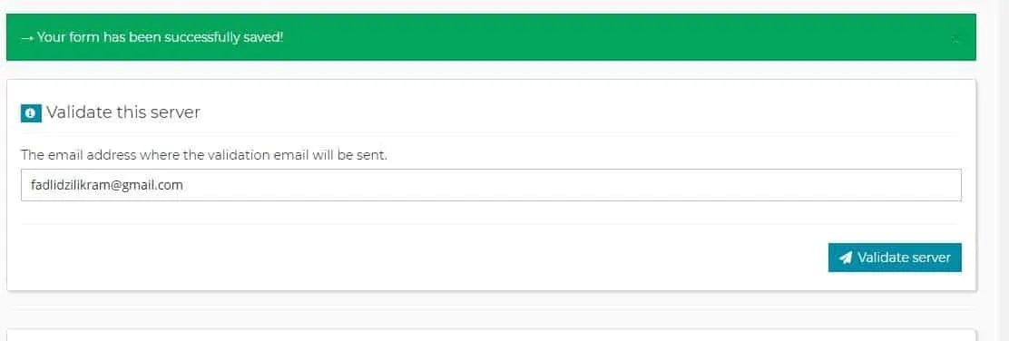 5. Kemudian Masukkan Email Pribadi Anda untuk memvalidasi server