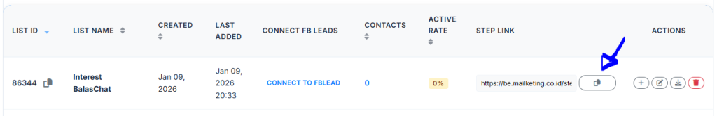 Step Link adalah fitur Mailketing yang memungkinkan Anda menyalin (duplicate) subscriber dari satu list ke list lain berdasarkan klik link di dalam email campaign atau autoresponder.